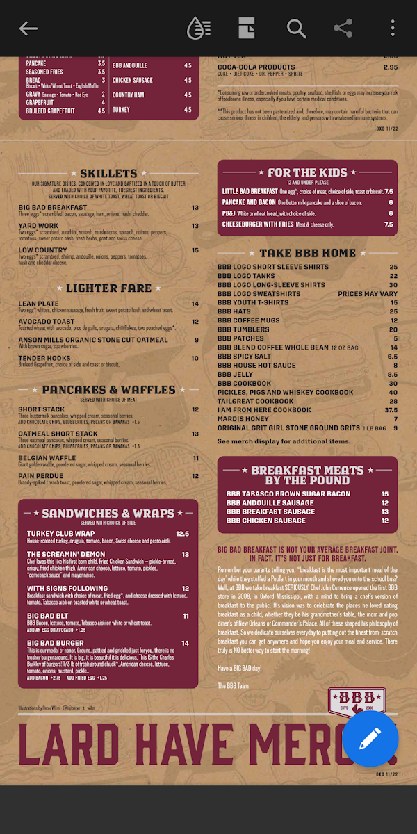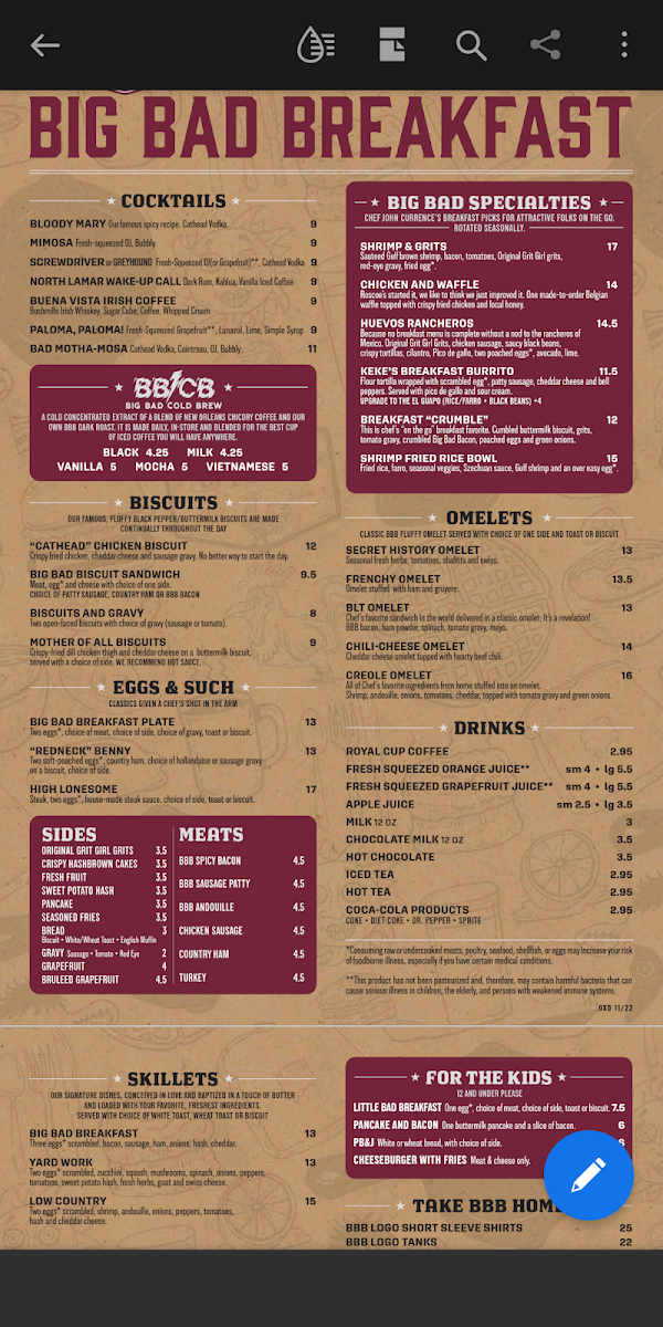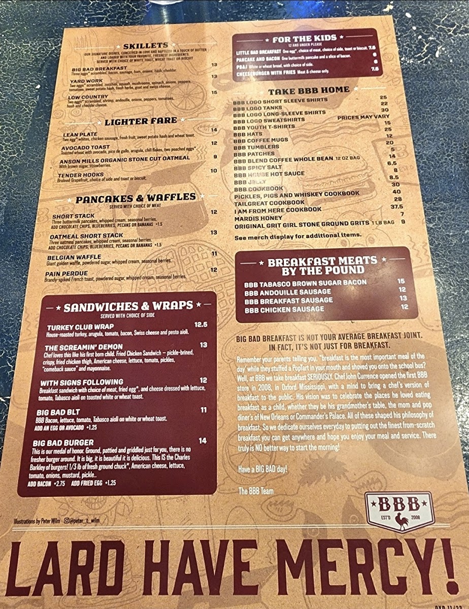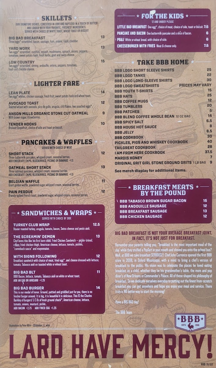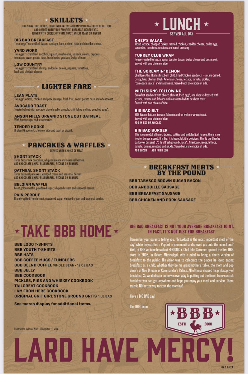 Welcome to Big Bad Breakfast, the breakfast haven located at 719 N Lamar Blvd, Oxford, MS. This charming eatery elevates the morning meal with a mouthwatering menu that melds Southern comfort food with innovative twists. Expect to be delighted by dishes like the Mother of All Biscuits and unique offerings such as oatmeal pancakes and shrimp fried rice bowls.